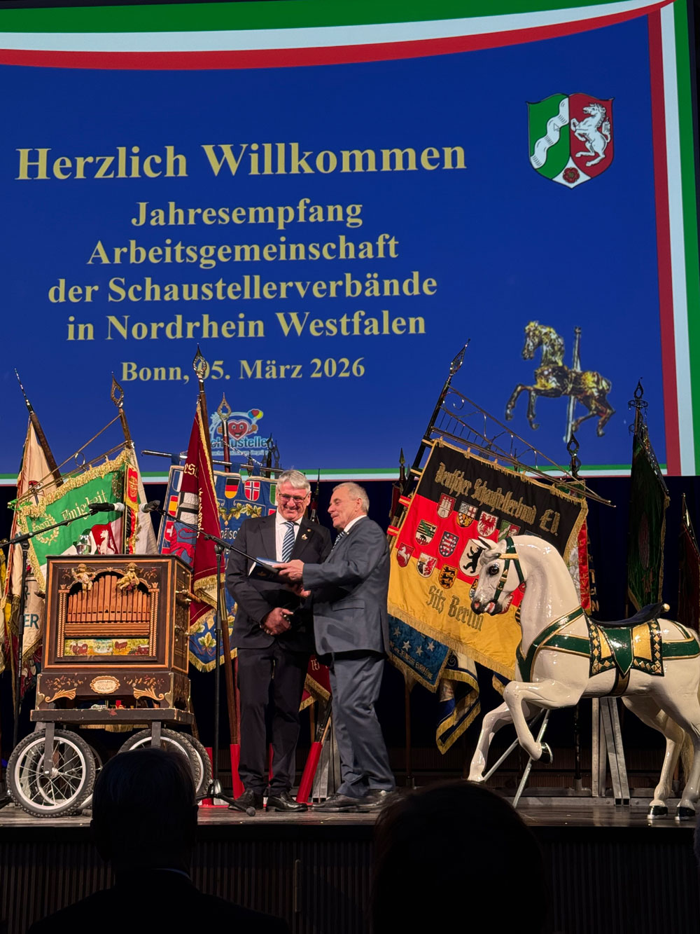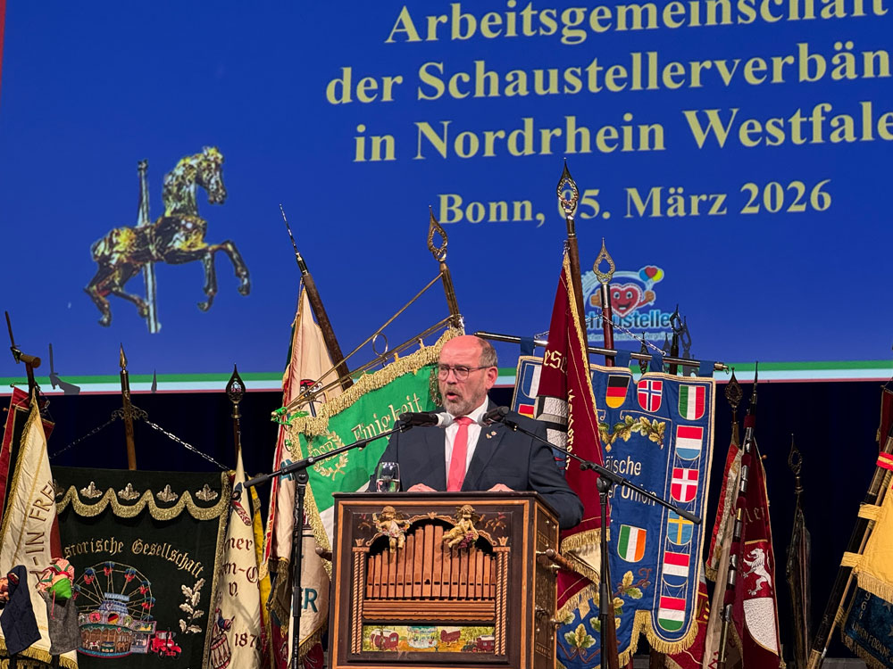 Für den ausrichtenden Deutschen Schaustellerbund Bonn begrüßte der Vorsitzende Peter Barth die Gäste und unterstrich die Rolle der Schausteller als wichtigen Bestandteil des kulturellen Lebens in Nordrhein-Westfalen.