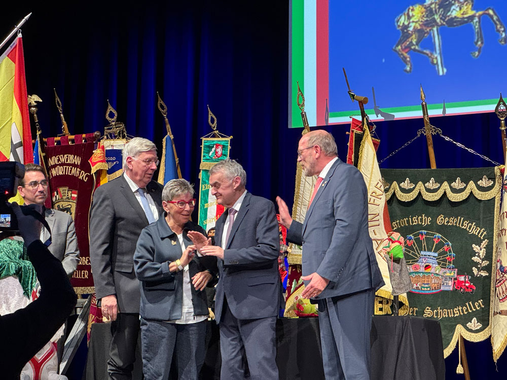 Albert Ritter führte zugleich durch den Abend und betonte in seiner Ansprache die große gesellschaftliche und wirtschaftliche Bedeutung der Volksfeste: „Kirmessen, Volksfeste und Weihnachtsmärkte sind Orte der Begegnung, der Tradition und der Lebensfreude. Sie gehören fest zur Identität unserer Städte und Gemeinden.“