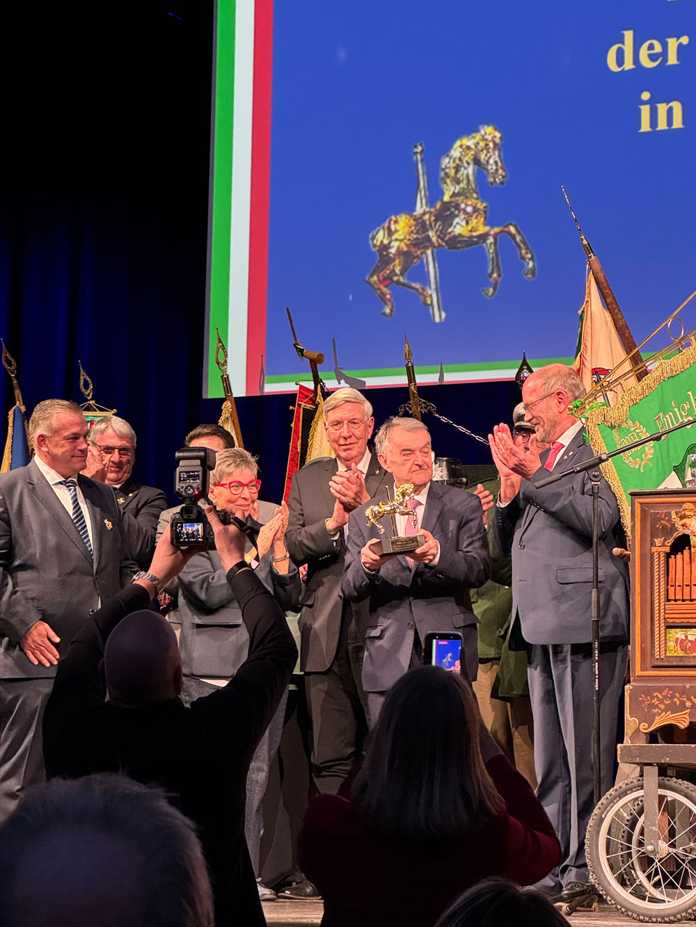 Höhepunkt der Veranstaltung war die Auszeichnung des nordrhein-westfälischen Innenministers Herbert Reul mit dem „Goldenen Kirmespferd“. Die Ehrung nahm der Präsident des Bundesverbandes Deutscher Schausteller und Marktkaufleute und Vorsitzender der Arbeitsgemeinschaft der Schaustellerverbände in Nordrhein-Westfalen (ARGE NRW), Albert Ritter, vor. Mit der Auszeichnung würdigt der Verband Reuls langjährigen Einsatz für den Erhalt und die Förderung des Kultur- und Wirtschaftsgutes „Kirmes, Volksfest und Weihnachtsmarkt“ in Nordrhein-Westfalen sowie sein Engagement für verlässliche und sichere Rahmenbedingungen für Veranstaltungen.
